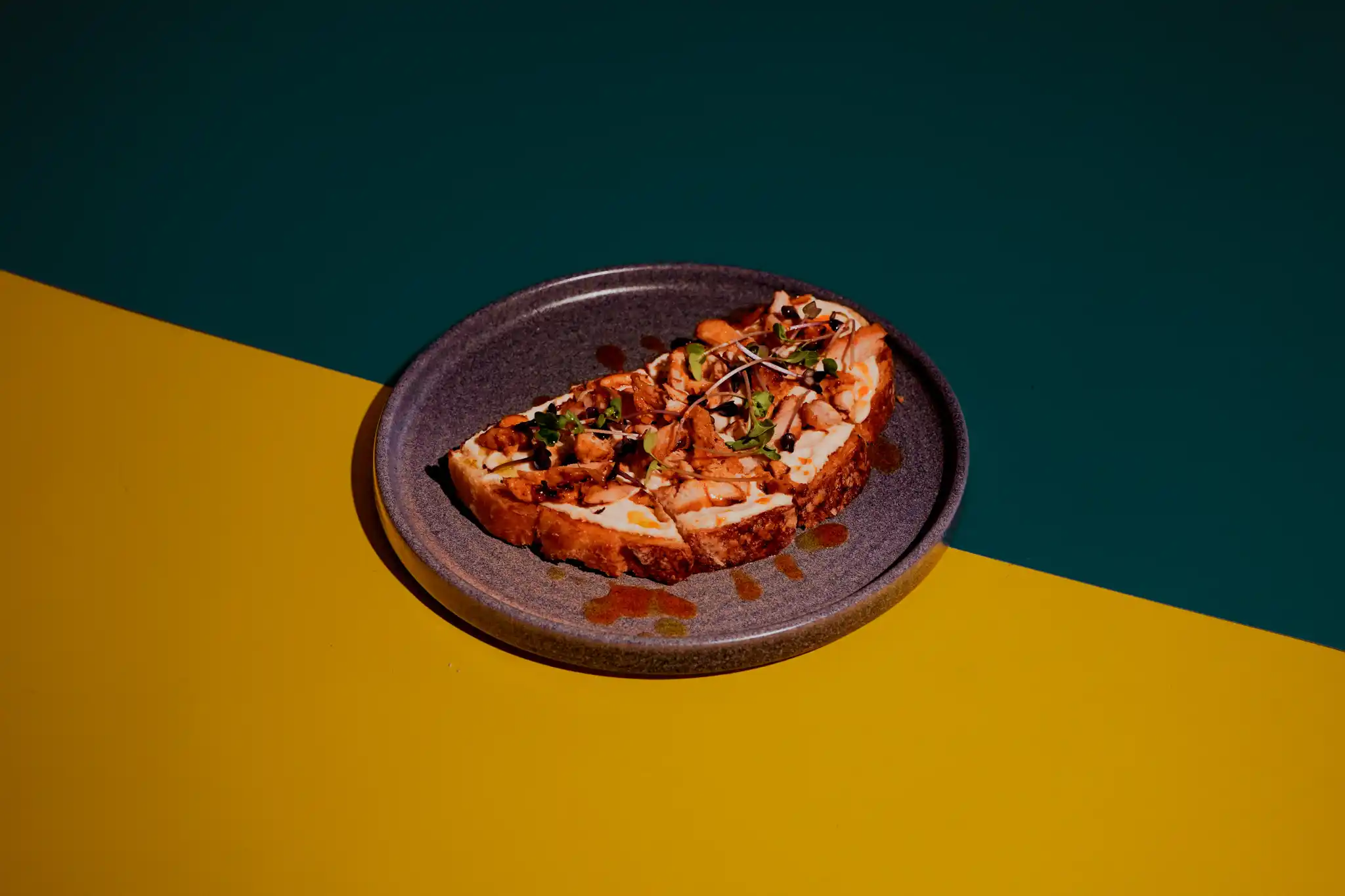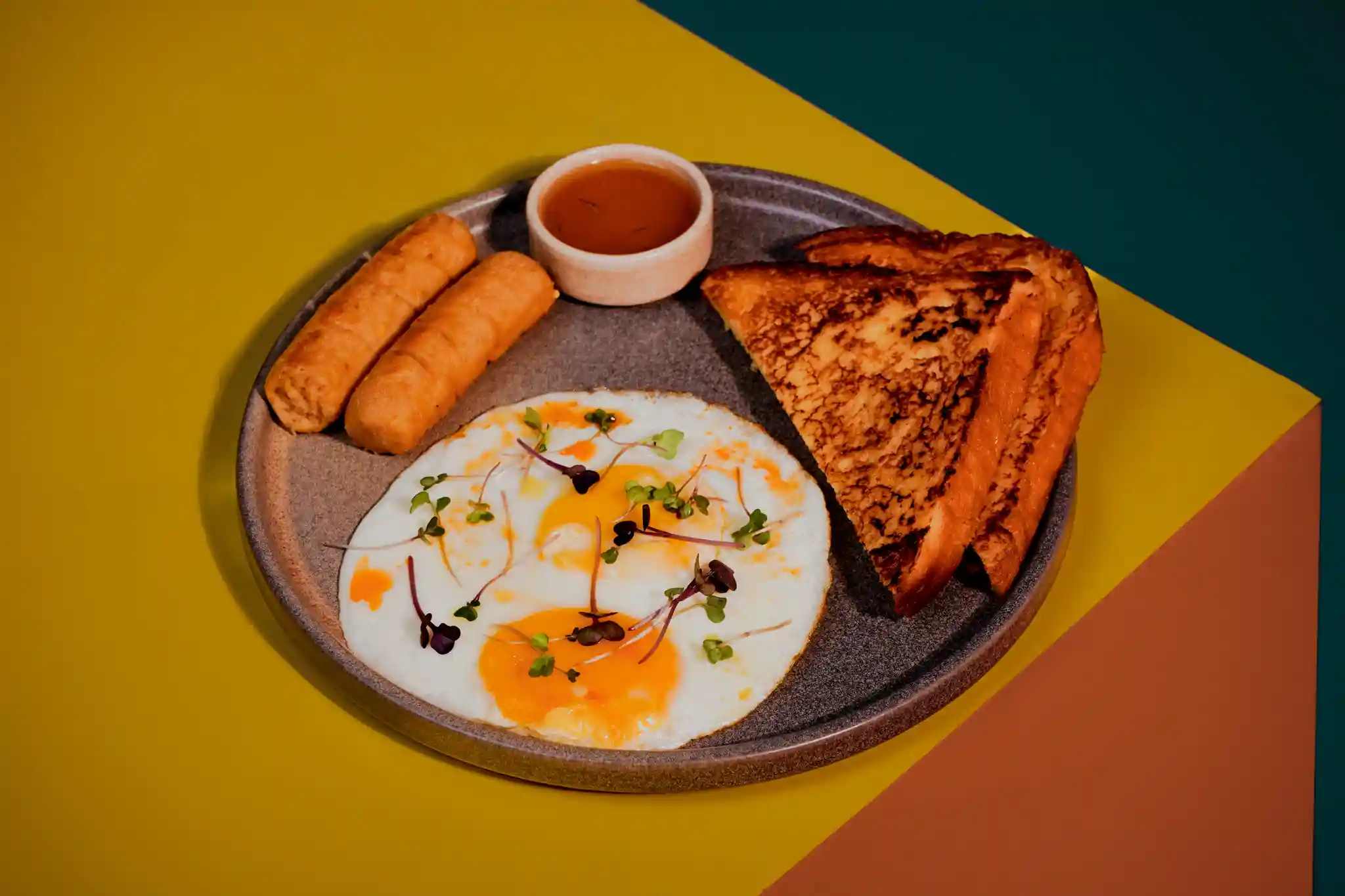 Breakfast bowl comprising of diced hash browns, tossed with sautéed onion, capsicum, and mushrooms with your choice of meat, topped with 2 fried eggs Veg / Chicken / Pork